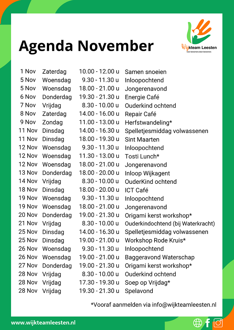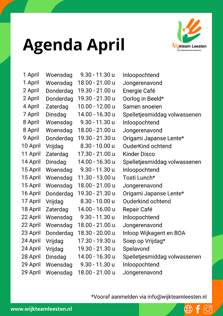 Bekijk hier de activiteiten van Wijkteam Leesten