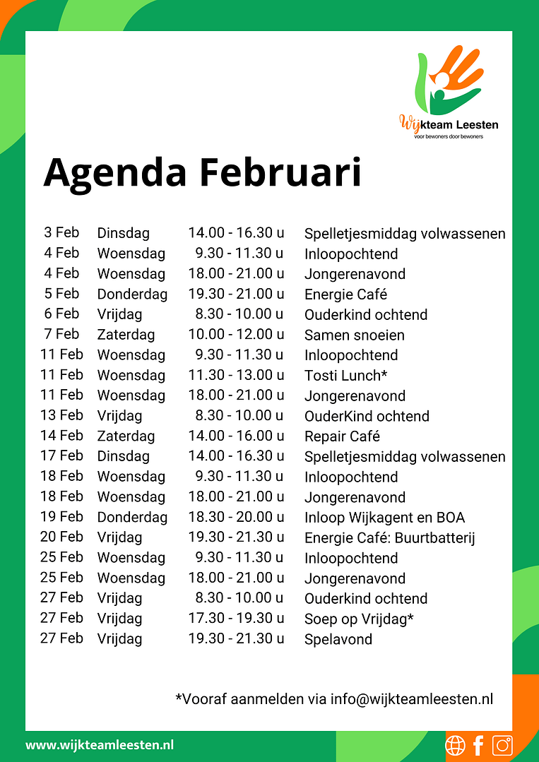 Wijkteam Leesten organiseert zeer regelmatig activiteiten voor verschillende doelgroepen.