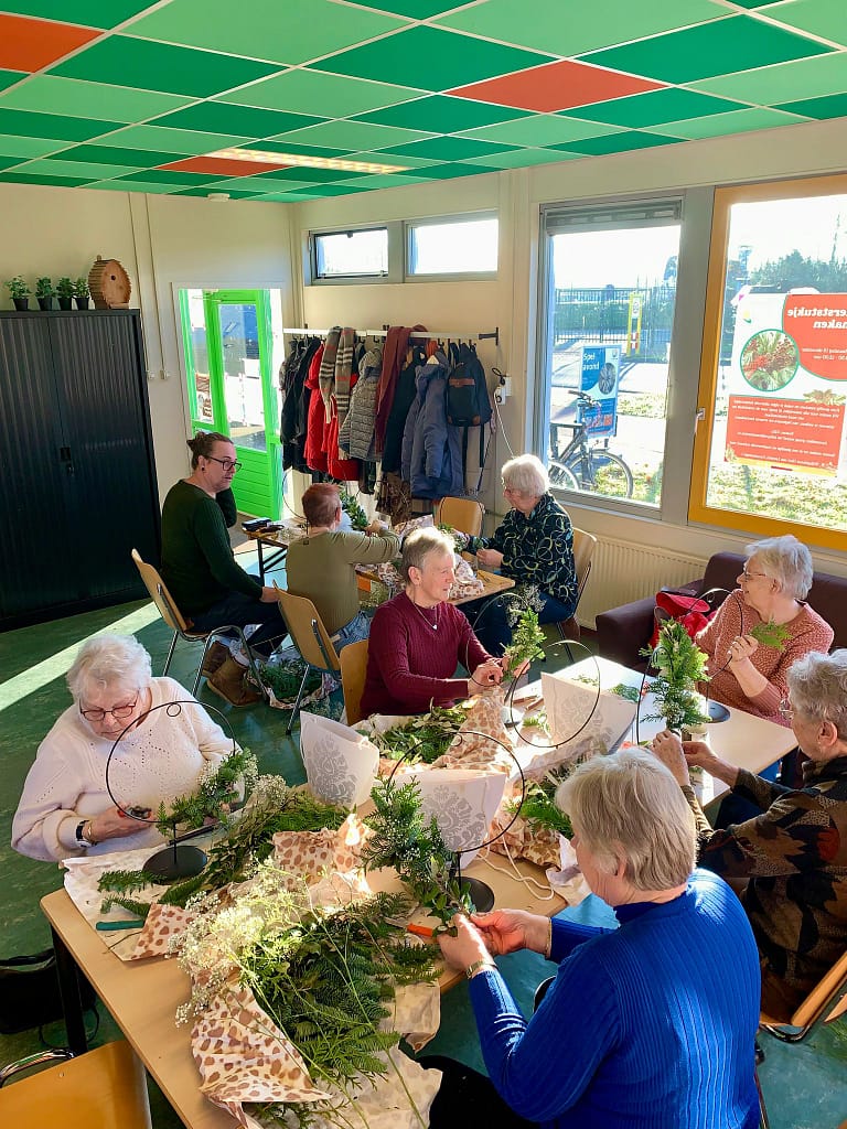Tegen een kleine vergoeding konden de deelnemers zelf iets prachtigs creëren. Met aandacht, geduld en een flinke dosis enthousiasme ontstonden er stuk voor stuk mooie kerststukken, de één nog mooier dan de ander. Voor sommigen was het even zwoegen, maar dat mocht de pret niet drukken. Want zoals bij zoveel dingen in het leven, telt niet alleen het eindresultaat, maar juist ook de weg ernaartoe.