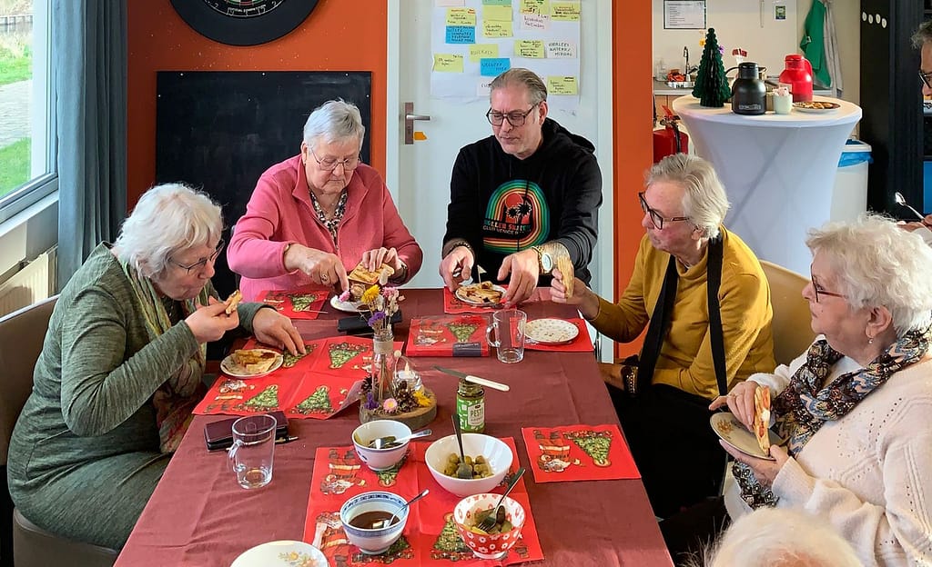 10 december was het weer zover: tijd voor een feestelijke lunch die nog lang in ons geheugen zal blijven. Met z’n twaalven schoven we aan rondom een grote tafel, waar gezelligheid en heerlijke geuren hand in hand gingen. Het middelpunt van deze smakelijke bijeenkomst? De legendarische tosti’s van niemand minder dan Tante Tosti Edith.